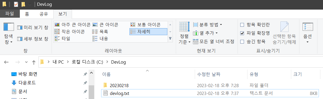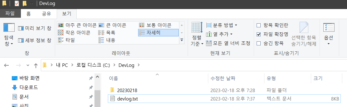 일자별 폴더에 파일을 생성한다고 가정했다. 해당 일자에 최초 한 번만 폴더를 생성하면 된다. exists 메소드를 사용하여 존재여부를 체크하고 일자 폴더를 생성하였다.