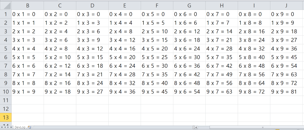 cell.setCellValue(String.format("%s x %s = %s", nRow, nCol, nRow * nCol));