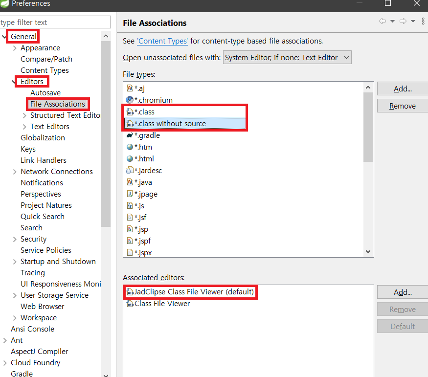 IDE를 재실행하면 Plugin이 적용되어 JadClipse를 설정할 수 있게 된다.