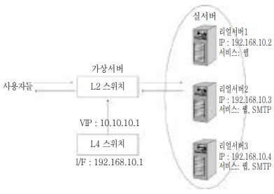 로드밸런서 장비를 도입하게되면 모든 요청을 L4장비가 받으니 서버들이 공인 IP를 갖게 될 이유가 없다. 따라서 L4장비는 외부 접속용 공인 IP와 서버 통신용 사설 IP를 각각 한 개씩 가지게 된다.