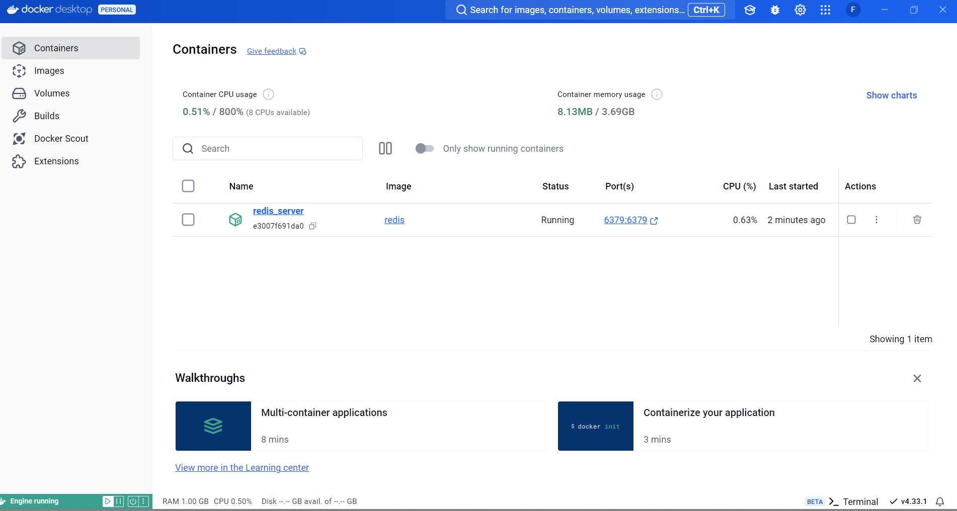 docker run --name redis_server -it -d -p 6379:6379 redis