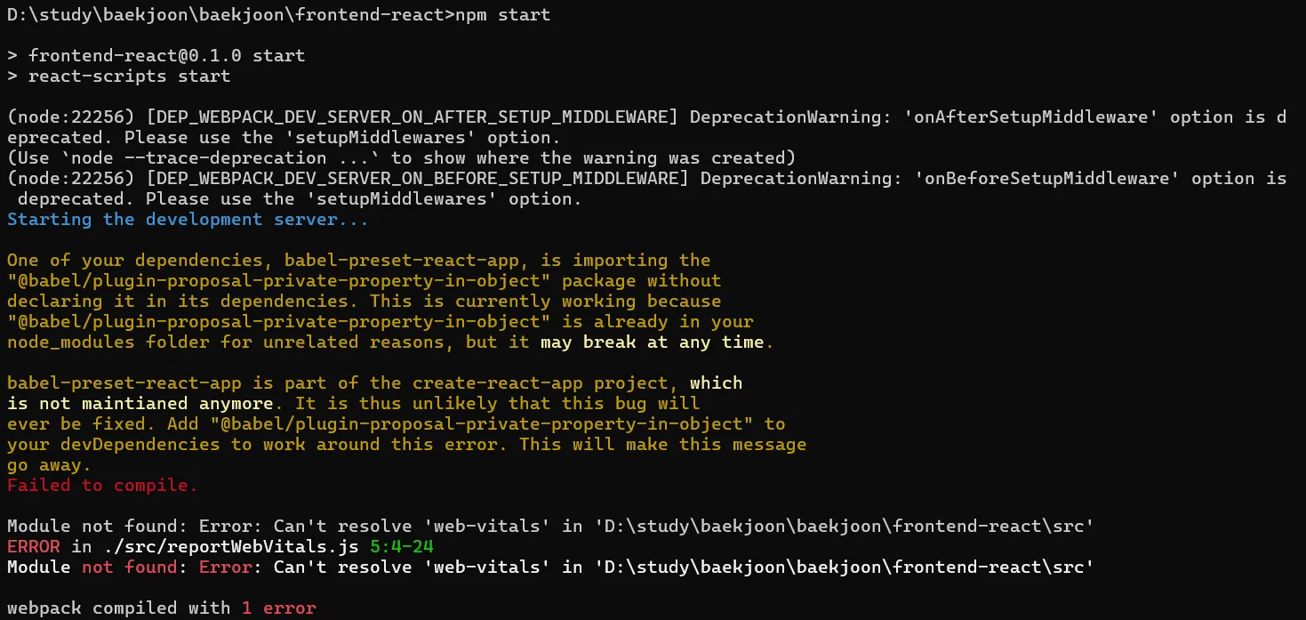 Can’t resolve ‘web-vitals’ Error 조치방법