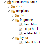 default.html에는 script, head, sidebar가 각각의 fragment로 대체된다.