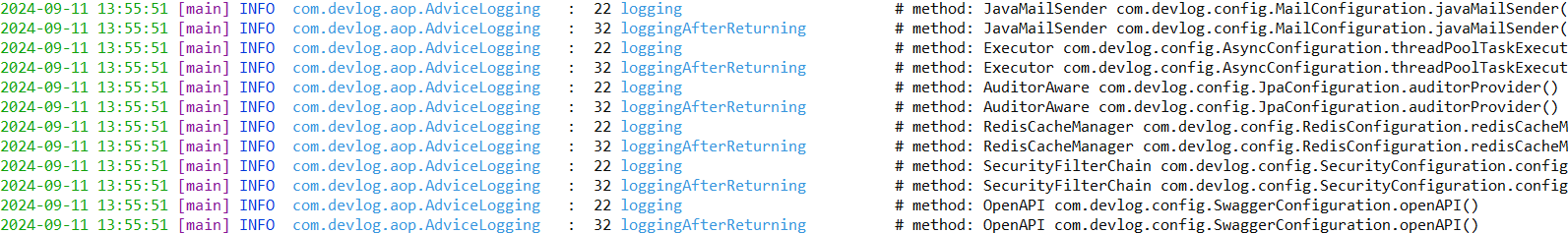 @AfterReturning(pointcut = "execution(* com.devlog..*.*(..)) "