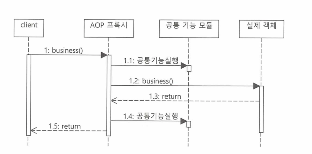 호출자(클라이언트)에서 타겟을 호출하게 되면 타겟이 아닌 타겟을 감싸고 있는 프록시가 호출되어, 타겟 메서드 실행 전에 선처리, 타겟 메서드 실행 후, 후처리를 실행시키도록 구성되어 있습니다.
