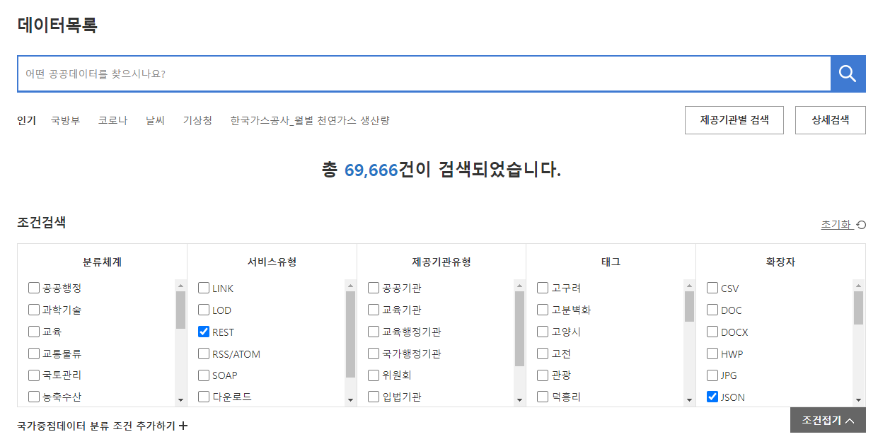 공공데이터 포털에는 수많은 REST API를 제공한다.